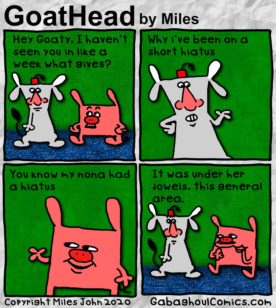 They’re Back Posted on August 9, 2024 by Miles John Goat Head #113 – Copyright 2020 Miles John Share this: Click to share on X (Opens in new window) X Click to share on Facebook (Opens in new window) Facebook Like Loading... Related